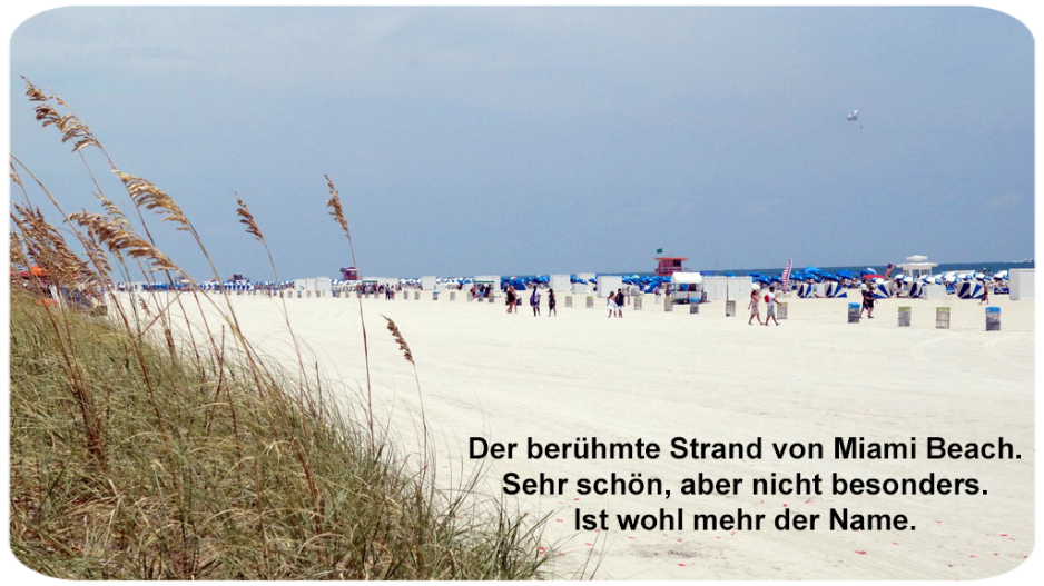 Kurz die wichtigsten Sachen ausgepackt und schnell unter die Dusche. Ich habe mich mit den anderen auf dem Ocean Drive verabredet.