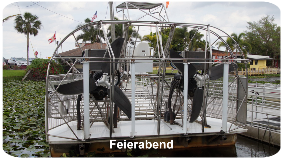 Irgendwann, ich war mit den Fotomotiven auch soweit durch, erwachten die anderen zum Leben und schlugen vor, dass wir uns zu einer Airboat Tour in den Everglades treffen sollten. Der Weg dorthin war nicht lang und so trafen wir uns nach ca. einer Stunde Autofahrt am Eingang des Evergaldes Safari Park.