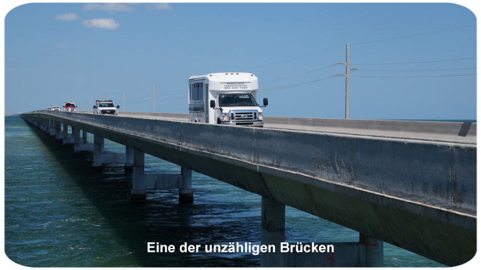 Während die lieben Kollegen schon wieder büffeln, führt mich die Reise auf die Florida Keys. Zwar war ich vor neun Jahren schon einmal hier, aber mich fasziniert dieser Highway #1 oder auch "Oversea Highway" genannt, einfach sehr. Viele Inseln die untereinander nur durch diese Straße verbunden sind. Die Straße, die oft Meilenweit über das offene Meer führt. Unbeschreiblich schön.