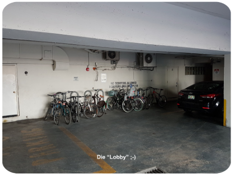 Nach zig Fahrten um den Block und unzähligen nervigen Anfragen und Anrufen des Vermieters wann ich denn endlich dort sei, fand die Übergabe des Schlüssels mit einer kurzen Einweisung wo ich das Appartment finden würde im Halteverbot statt. Es gibt ein Parkhaus direkt um die Ecke. Das ist mit 1$ pro Stunde auch spottbillig. Aber dementsprechend auch komplett voll. Die Zufahrtsstraße war gesperrt. Der Vermieter machte mir Mut in dem er mir sagte, dass ab ca. 17:30 wieder Plätze frei werden, weil dann viele von Strand nach Hause fahren. So war es dann tatsächlich auch.